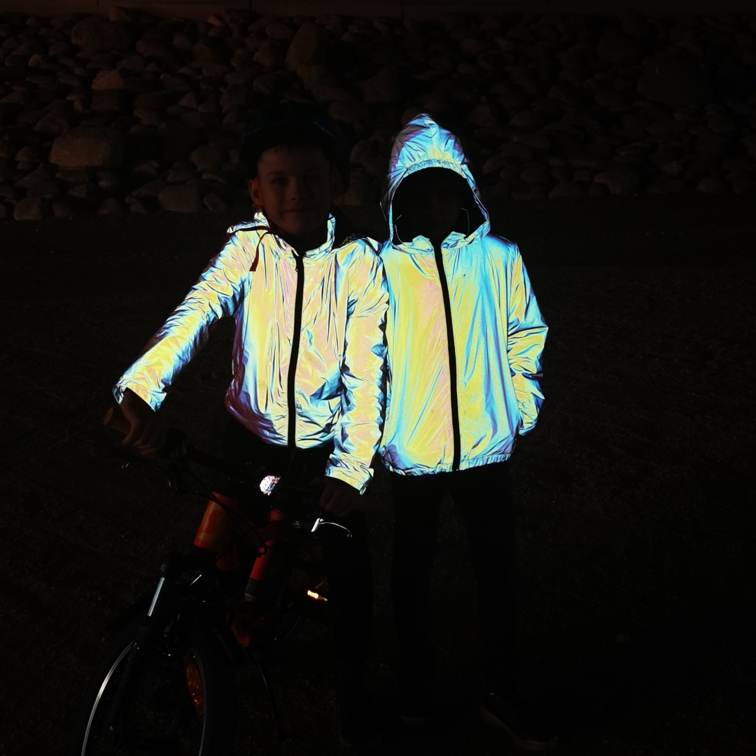 From the range you'll find baby reflective covers with universal cut and coloured children's reflective tops (sizes 116-146). You can also check out our new products and our reflective fabrics.
