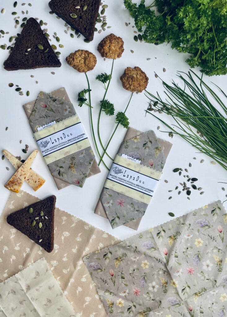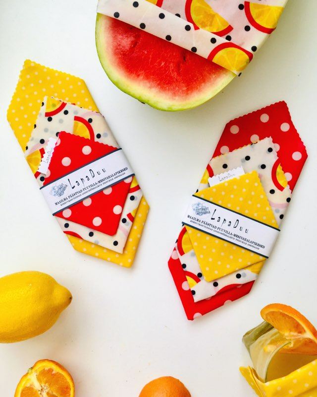 LapaDuu vahavaatteet. Säilytä ylijäämäruoka käsintehdyssä, ympäristöystävällisessä, 100-prosenttisesti biohajoavassa ja uudelleenkäytettävässä (kyllä, todella pestävässä ja pitkäikäisessä) ja kauniissa LapaDuu-vaatteessa.